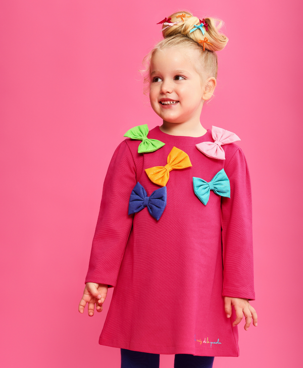 VESTIDO LAZOS FUCSIA CON LEOTARDOS